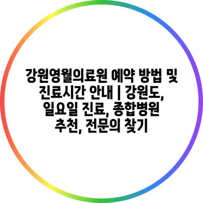 강원영월의료원 예약 방법 및 진료시간 안내 | 강원도, 일요일 진료, 종합병원 추천, 전문의 찾기