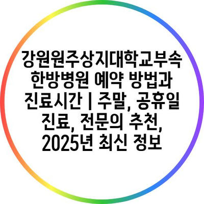 강원원주상지대학교부속 한방병원 예약 방법과 진료시간 | 주말, 공휴일 진료, 전연락 추천, 2025년 최신 정보 에 대해 자주 묻는 질문 TOP 5