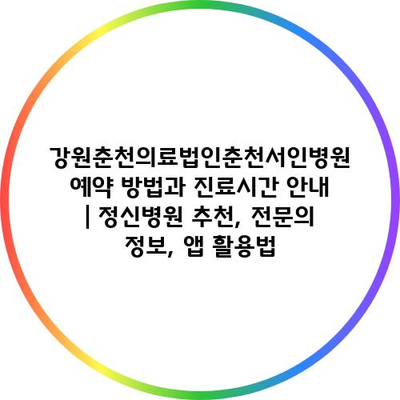 강원춘천의료법인춘천서인병원 예약 방법과 진료시간 공지 | 정신병원 추천, 전연락 정보, 앱 활용법 에 대해 자주 묻는 질문 TOP 5