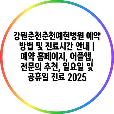 강원춘천춘천예현병원 예약 방법 및 진료시간 공지 | 예약 홈페이지, 어플앱, 전연락 추천, 일요일 및 공휴일 진료 2025 에 대해 자주 묻는 질문 TOP 5