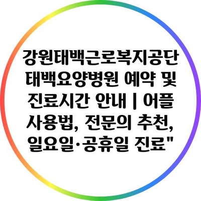 강원태백근로복지공단 태백요양병원 예약 및 진료시간 공지 | 어플 사용법, 전연락 추천, 일요일·공휴일 진료” 에 대해 자주 묻는 질문 TOP 5