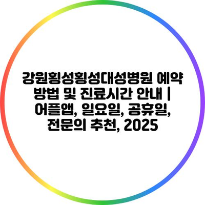 강원횡성횡성대성병원 예약 방법 및 진료시간 공지 | 어플앱, 일요일, 공휴일, 전연락 추천, 2025 에 대해 자주 묻는 질문 TOP 5