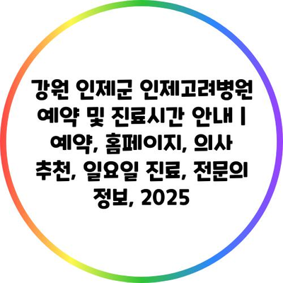 강원 인제군 인제고려병원 예약 및 진료시간 공지 | 예약, 홈페이지, 의사 추천, 일요일 진료, 전연락 정보, 2025 에 대해 자주 묻는 질문 TOP 5