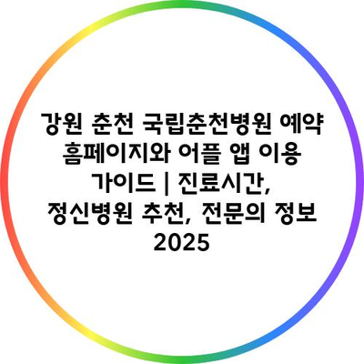 강원 춘천 국립춘천병원 예약 홈페이지와 어플 앱 이용 설명서 | 진료시간, 정신병원 추천, 전연락 정보 2025에 대해 자주 묻는 질문 TOP 5