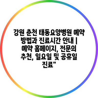 강원 춘천 태동요양병원 예약 방법과 진료시간 공지 | 예약 홈페이지, 전연락 추천, 일요일 및 공휴일 진료” 에 대해 자주 묻는 질문 TOP 5