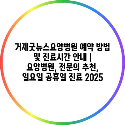 거제굿뉴스요양병원 예약 방법 및 진료시간 공지 | 요양병원, 전연락 추천, 일요일 공휴일 진료 2025 에 대해 자주 묻는 질문 TOP 5