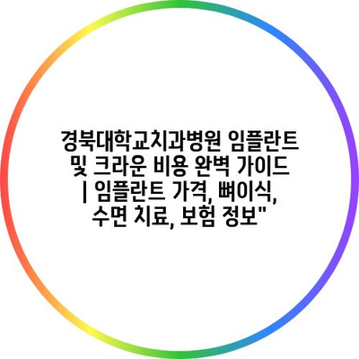 경북대학교치과병원 임플란트 및 크라운 비용 완벽 설명서 | 임플란트 가격, 뼈이식, 수면 치료, 보험 정보