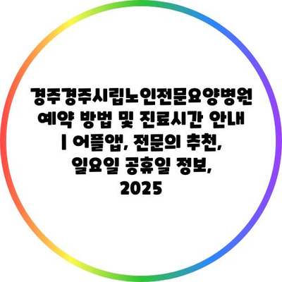 경주경주시립노인전문요양병원 예약 방법 및 진료시간 공지 | 어플앱, 전연락 추천, 일요일 공휴일 정보, 2025 에 대해 자주 묻는 질문 TOP 5