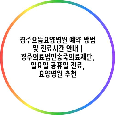 경주으뜸요양병원 예약 방법 및 진료시간 공지 | 경주의료법인송죽의료재단, 일요일 공휴일 진료, 요양병원 추천 에 대해 자주 묻는 질문 TOP 5