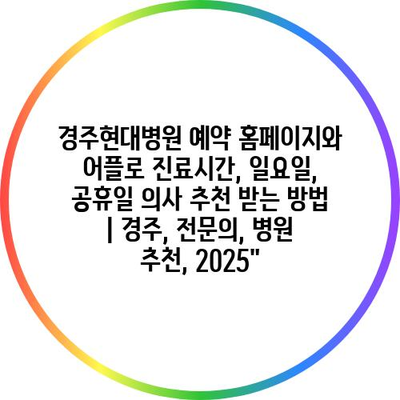 경주현대병원 예약 홈페이지와 어플로 진료시간, 일요일, 공휴일 의사 추천 받는 방법 | 경주, 전문의, 병원 추천, 2025″
