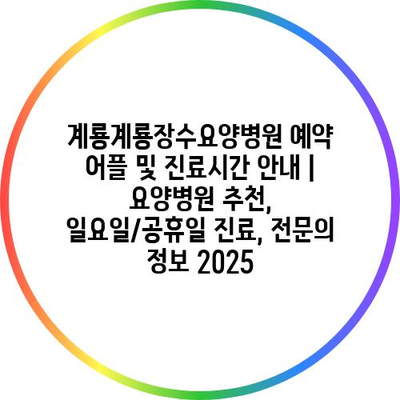 계룡계룡장수요양병원 예약 어플 및 진료시간 안내 | 요양병원 추천, 일요일/공휴일 진료, 전문의 정보 2025
