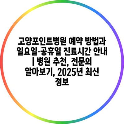 고양포인트병원 예약 방법과 일요일·공휴일 진료시간 공지 | 병원 추천, 전연락 알아보기, 2025년 최신 정보 에 대해 자주 묻는 질문 TOP 5