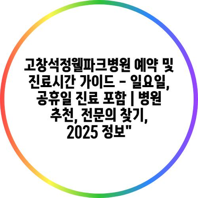 고창석정웰파크병원 예약 및 진료시간 설명서 – 일요일, 공휴일 진료 포함 | 병원 추천, 전연락 찾기, 2025 정보