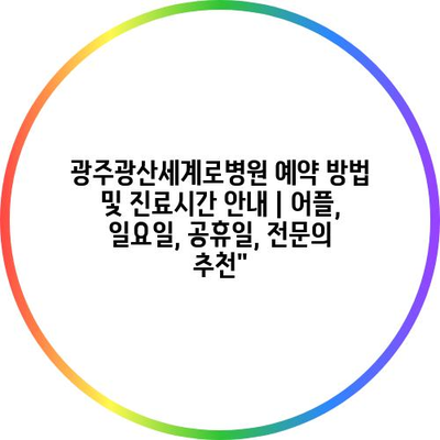 광주광산세계로병원 예약 방법 및 진료시간 안내 | 어플, 일요일, 공휴일, 전문의 추천”