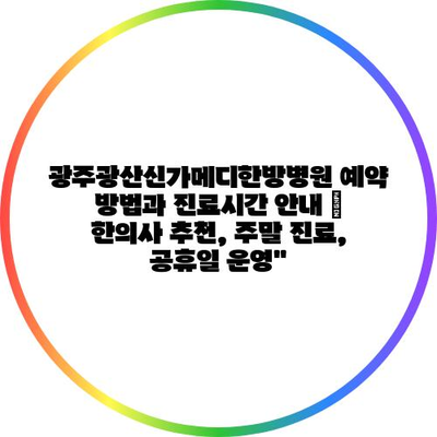 광주광산신가메디한방병원 예약 방법과 진료시간 공지 | 한의사 추천, 주말 진료, 공휴일 운영”에 대해 자주 묻는 질문 TOP 5