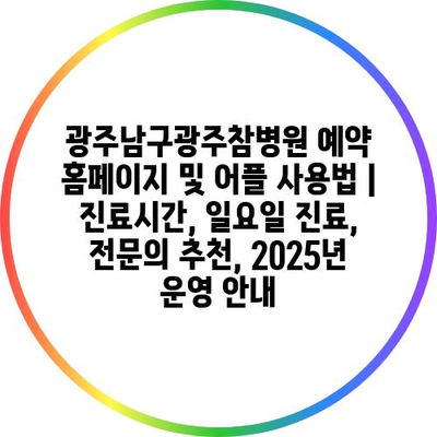 광주남구광주참병원 예약 홈페이지 및 어플 사용법 | 진료시간, 일요일 진료, 전연락 추천, 2025년 운영 공지 에 대해 자주 묻는 질문 TOP 5