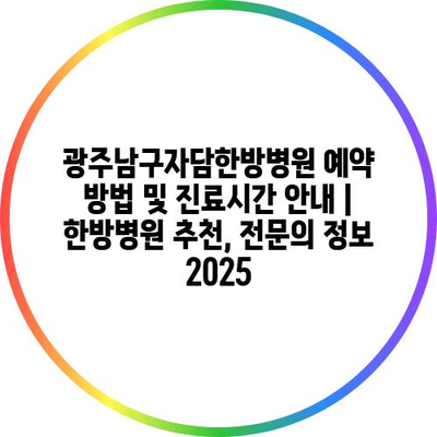 광주남구자담한방병원 예약 방법 및 진료시간 공지 | 한방병원 추천, 전연락 정보 2025 에 대해 자주 묻는 질문 TOP 5