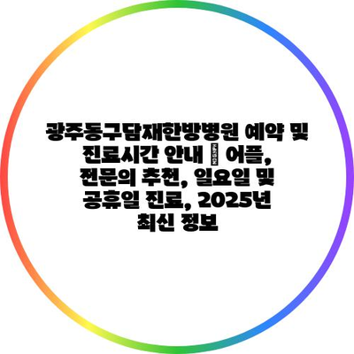 광주동구담재한방병원 예약 및 진료시간 안내 | 어플, 전문의 추천, 일요일 및 공휴일 진료, 2025년 최신 정보