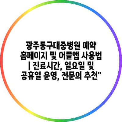 광주동구대중병원 예약 홈페이지 및 어플앱 사용법 | 진료시간, 일요일 및 공휴일 운영, 전연락 추천 에 대해 자주 묻는 질문 TOP 5