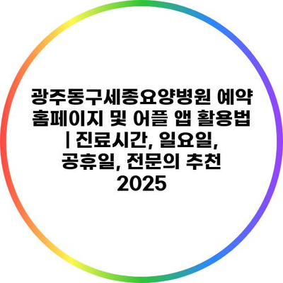 광주동구세종요양병원 예약 홈페이지 및 어플 앱 활용법 | 진료시간, 일요일, 공휴일, 전연락 추천 2025에 대해 알아보겠습니다.