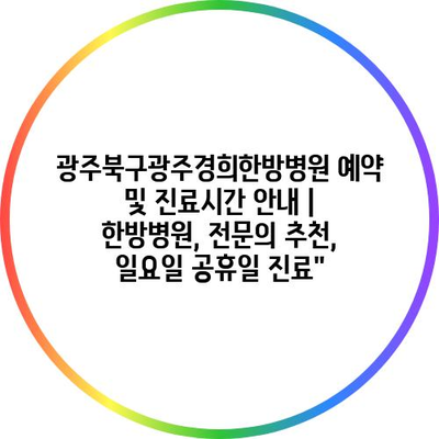 ✅ 광주북구경희한방병원의 예약 방법을 쉽고 빠르게 알아보세요!