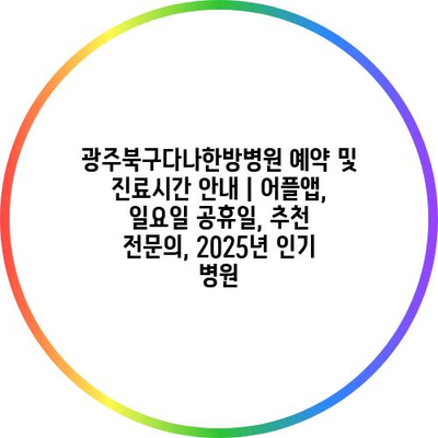 광주북구다나한방병원 예약 및 진료시간 공지 | 어플앱, 일요일 공휴일, 추천 전연락, 2025년 인기 병원 에 대해 자주 묻는 질문 TOP 5
