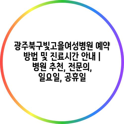 광주북구빛고을여성병원 예약 방법 및 진료시간 안내 | 병원 추천, 전문의, 일요일, 공휴일