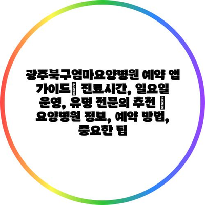 광주북구엄마요양병원 예약 앱 설명서| 진료시간, 일요일 운영, 유명 전연락 추천 | 요양병원 정보, 예약 방법, 중요한 팁