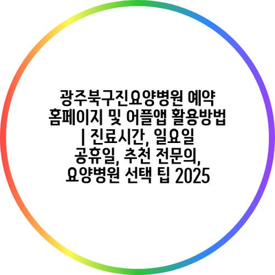 광주북구진요양병원 예약 홈페이지 및 어플앱 활용방법 | 진료시간, 일요일 공휴일, 추천 전연락, 요양병원 선택 팁 2025 에 대해 자주 묻는 질문 TOP 5