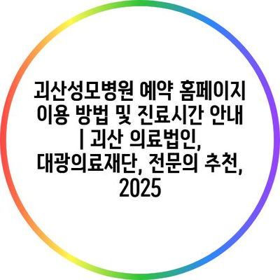 ✅ 괴산성모병원의 예약 방법을 자세히 알아보세요.