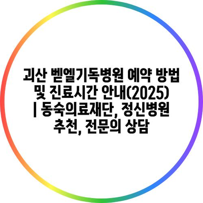 괴산 벧엘기독병원 예약 방법 및 진료시간 안내(2025) | 동숙의료재단, 정신병원 추천, 전문의 상담
