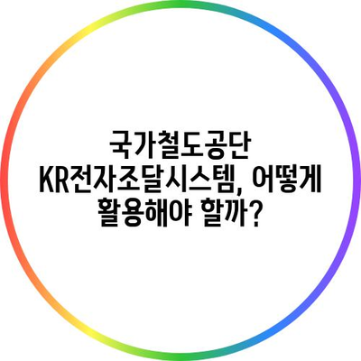 국가철도공단 KR전자조달시스템, 어떻게 활용해야 할까?