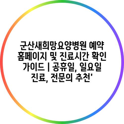 ✅ 군산새희망요양병원 예약 방법과 진료시간을 간편하게 알아보세요.