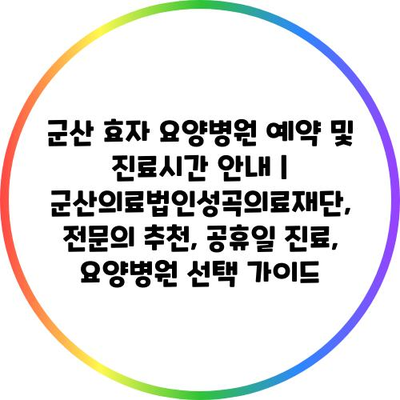 ✅ 군산 효자 요양병원의 진료시간과 예약 방법을 지금 바로 알아보세요!