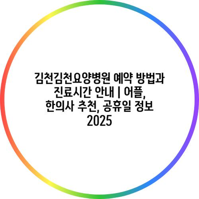 김천김천요양병원 예약 방법과 진료시간 공지 | 어플, 한의사 추천, 공휴일 정보 2025에 대해 알아보겠습니다.