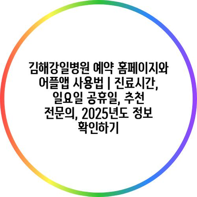 김해강일병원 예약 홈페이지와 어플앱 사용법 | 진료시간, 일요일 공휴일, 추천 전문의, 2025년도 정보 확인하기
