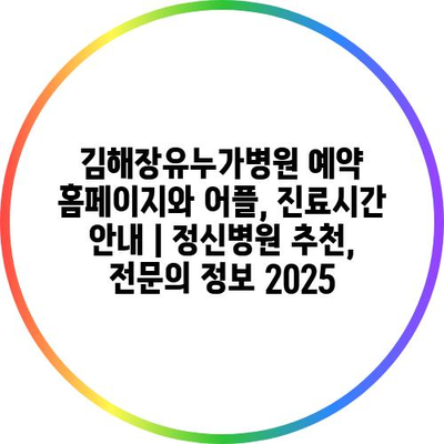 ✅ 김해장유누가병원의 진료시간과 예약 방법을 알아보세요!