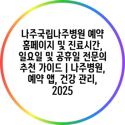 나주국립나주병원 예약 홈페이지 및 진료시간, 일요일 및 공휴일 전연락 추천 설명서 | 나주병원, 예약 앱, 건강 관리, 2025에 대해 자주 묻는 질문 TOP 5