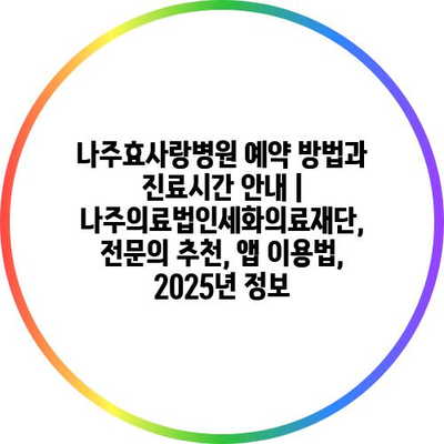 나주효사랑병원 예약 방법과 진료시간 안내 | 나주의료법인세화의료재단, 전문의 추천, 앱 이용법, 2025년 정보