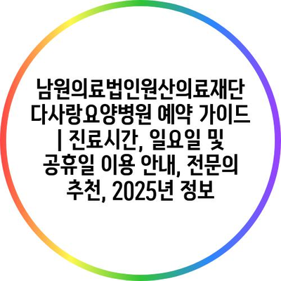 남원의료법인원산의료재단 다사랑요양병원 예약 설명서 | 진료시간, 일요일 및 공휴일 이용 공지, 전연락 추천, 2025년 정보 에 대해 자주 묻는 질문 TOP 5