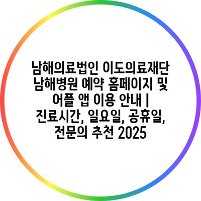 남해의료법인 이도의료재단 남해병원 예약 홈페이지 및 어플 앱 이용 공지 | 진료시간, 일요일, 공휴일, 전연락 추천 2025 에 대해 자주 묻는 질문 TOP 5