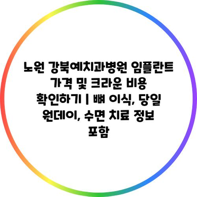 노원 강북예치과병원 임플란트 가격 및 크라운 비용 확인하기 | 뼈 이식, 당일 원데이, 수면 치료 정보 포함