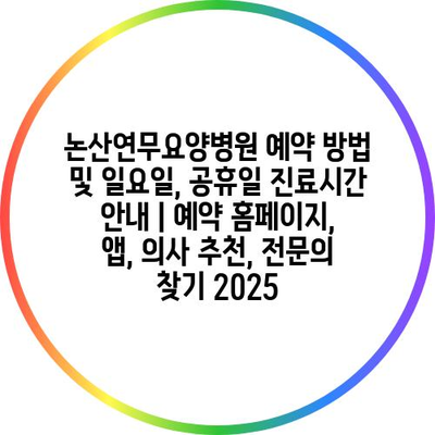 논산연무요양병원 예약 방법 및 일요일, 공휴일 진료시간 공지 | 예약 홈페이지, 앱, 의사 추천, 전연락 찾기 2025 에 대해 자주 묻는 질문 TOP 5