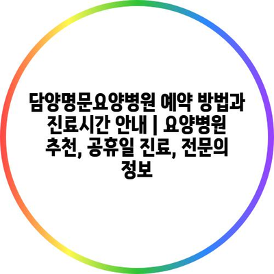 담양명문요양병원 예약 방법과 진료시간 공지 | 요양병원 추천, 공휴일 진료, 전연락 정보에 대해 자주 묻는 질문 TOP 5