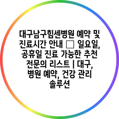 대구남구힘센병원 예약 및 진료시간 공지 – 일요일, 공휴일 진료 가능한 추천 전연락 리스트 | 대구, 병원 예약, 건강 관리 솔루션 에 대해 자주 묻는 질문 TOP 5