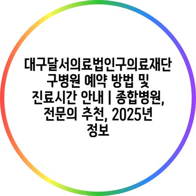 대구달서의료법인구의료재단 구병원 예약 방법 및 진료시간 공지 | 종합병원, 전연락 추천, 2025년 정보 에 대해 자주 묻는 질문 TOP 5