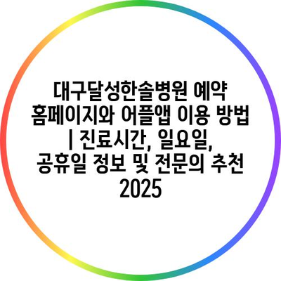 대구달성한솔병원 예약 홈페이지와 어플앱 이용 방법 | 진료시간, 일요일, 공휴일 정보 및 전연락 추천 2025 에 대해 자주 묻는 질문 TOP 5