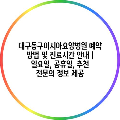 대구동구이시아요양병원 예약 방법 및 진료시간 안내 | 일요일, 공휴일, 추천 전문의 정보 제공