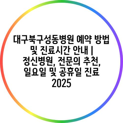 대구북구성동병원 예약 방법 및 진료시간 공지 | 정신병원, 전연락 추천, 일요일 및 공휴일 진료 2025 에 대해 자주 묻는 질문 TOP 5