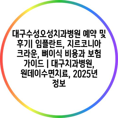 대구수성오성치과병원 예약 및 후기| 임플란트, 지르코니아 크라운, 뼈이식 비용과 보험 가이드 | 대구치과병원, 원데이수면치료, 2025년 정보
